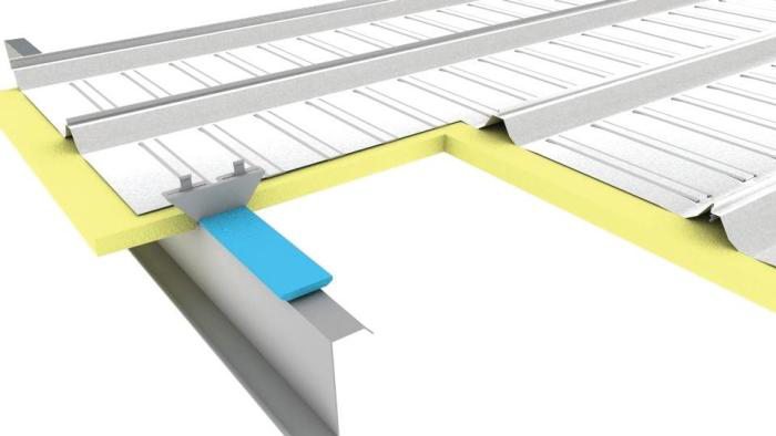 Das LMR600-Dachsystem ist ein Stehfalzdach, das mittels innenliegender Halter spannungsfrei gleitend auf den Dachpfetten befestigt wird.